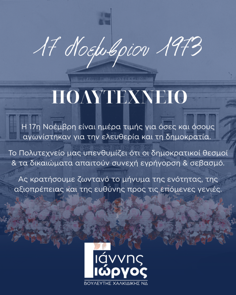 Το Πολυτεχνείο μας υπενθυμίζει ότι οι δημοκρατικοί θεσμοί και τα δικαιώματα απαιτούν συνεχή εγρήγορση και σεβασμό.
